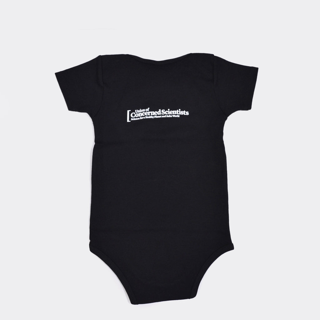 Dress the future scientist in your life in this adorable and super-soft geek-chic onesie. Your wee one’s first words just might be: I demand practical, evidence-based solutions for our planet’s most pressing problems!*